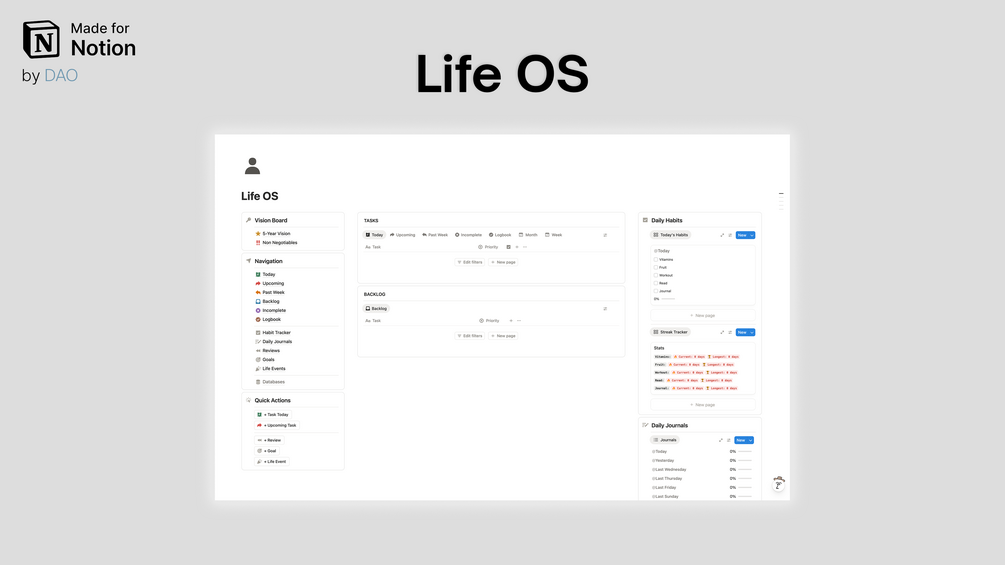 A Life OS Notion template to take control of your life.